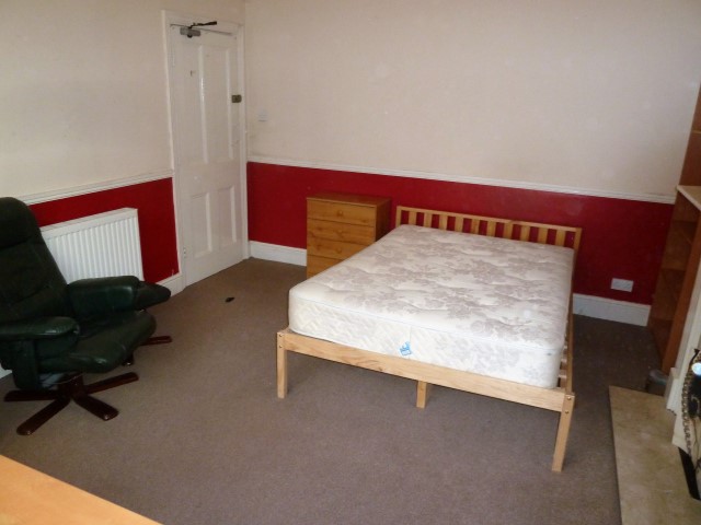 With double glazed sash window to rear. Contains desk with chair, bookcase, chest of drawers, wardrobe and three-quarter (small double) bed.